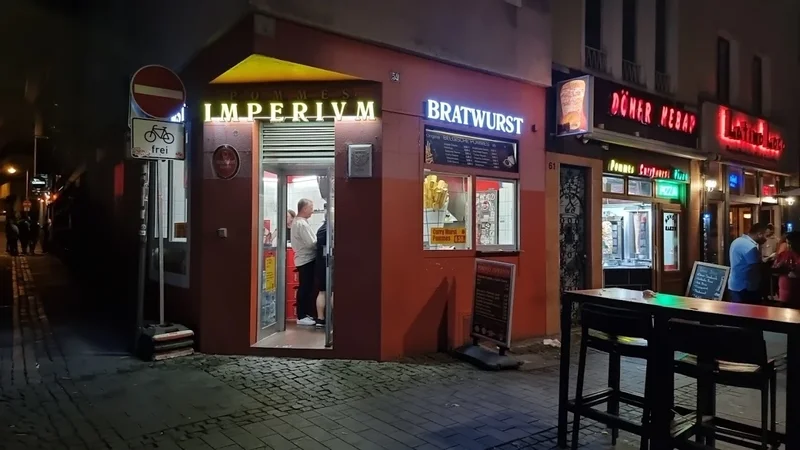 Das Pommes Imperium in der Heumarkt 59, 50667 Köln, ist ein beliebter Ort für Liebhaber von knusprigen Pommes und kreativen Frittiergerichten. Die Speisekarte bietet eine Vielzahl von Pommes-Variationen, darunter klassische, süßkartoffelige und sogar vegane Optionen, die alle mit köstlichen Dips serviert werden. Die entspannte Atmosphäre lädt dazu ein, sich mit Freunden zu treffen und die Spezialitäten in einer gemütlichen Umgebung zu genießen. In unmittelbarer Nähe befinden sich Attraktionen wie der Kölner Dom und die Rheinpromenade, die einen perfekten Rahmen für einen Besuch bieten. Pommes Imperium ist somit nicht nur ein gastronomisches Highlight, sondern auch ein idealer Ausgangspunkt für Erkundungen in der Kölner Altstadt.